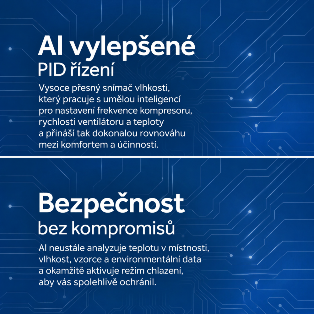 Zařízení analyzuje okolní podmínky, jako je teplota v místnosti, venkovní klima nebo zvyklosti uživatele, a na základě těchto dat automaticky upravuje svůj výkon. Výsledek? Stabilní teplota, nižší spotřeba energie a vyšší komfort bez nutnosti neustálého nastavování.