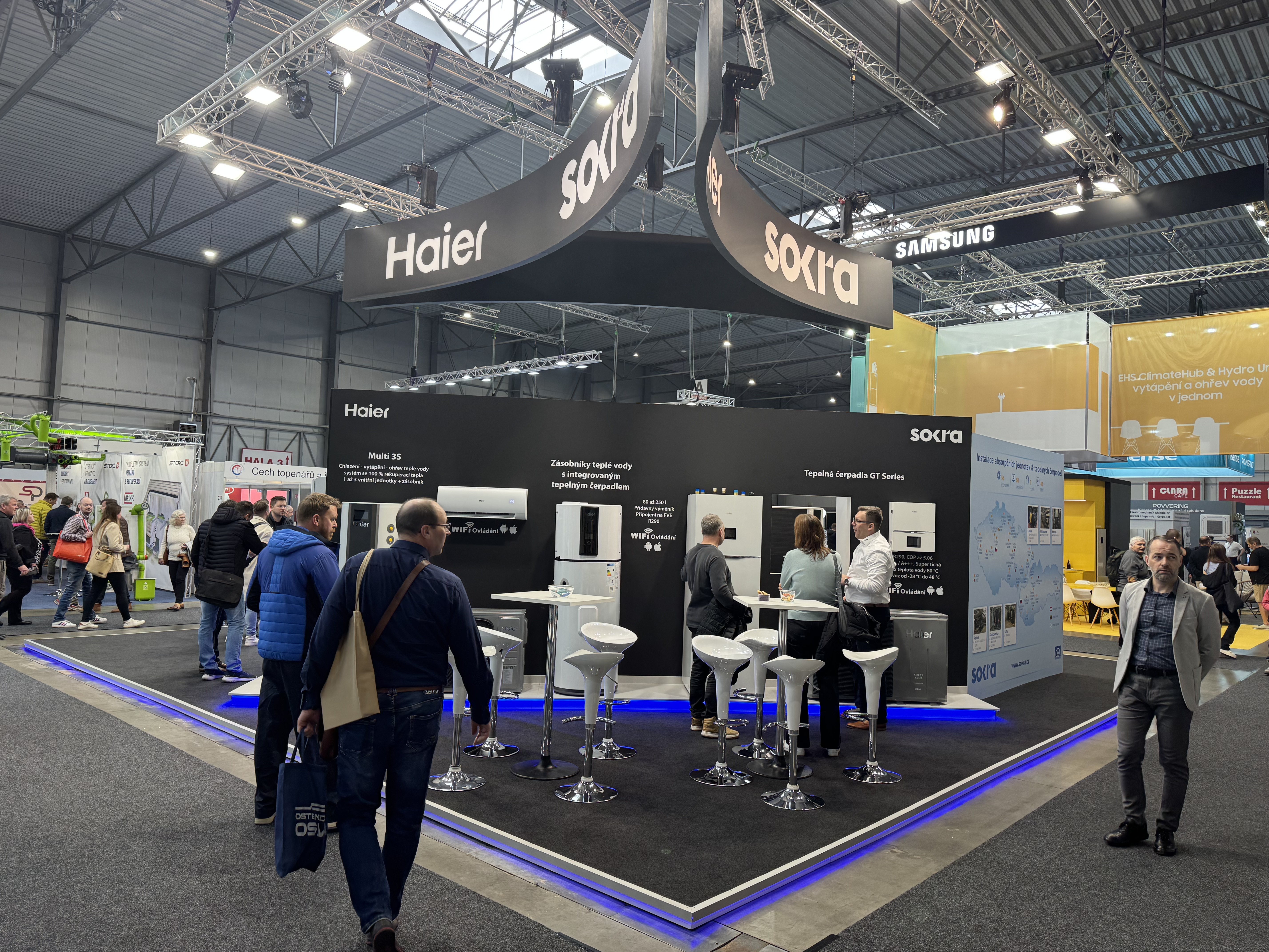 Na našem stánku byla možnost si prohlédnout systém MRV7S - VRF systém s chladivem R32, tepelná čerpadla GT series R290, ohřívače vody s tepelným čerpadlem R290, Multi 3S systém s rekuperací tepla a nové i stávající modely rezidenčních jednotek.